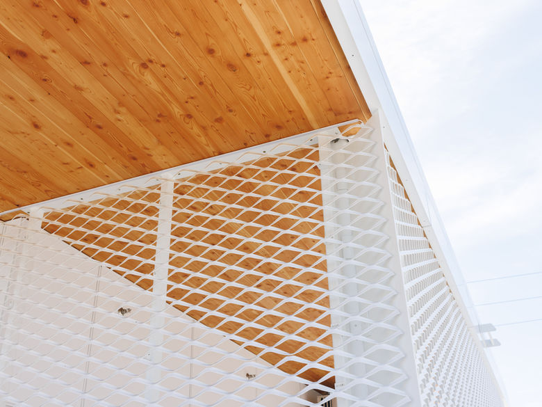 A systematic arrangement of frames providing a solid structure for the porcelain/ACM facade.